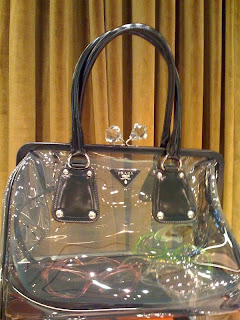 The good news: I have the perfect thing to motivate you to get cracking on those workouts. Check out this new see-through handbag from Prada. I love the diamond shaped kiss closure, and it’s waterproof so you can take it to the beach.